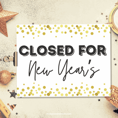 Wednesday, December 31, 2025, and will be closed Thursday, January 1, 2026, for New Years.
